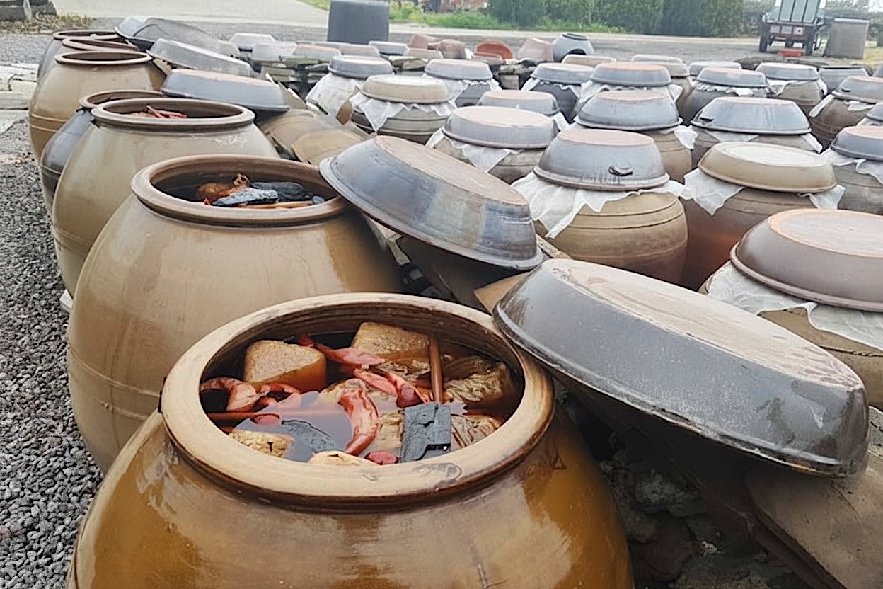 2. 깨끗이 손질된 항아리에 잘 담아서 1년 햇볕과 맑은 공기를 쏘이면서 자연숙성시키면 맛이 담백하고 맛있는 재래간장이 됩니다.